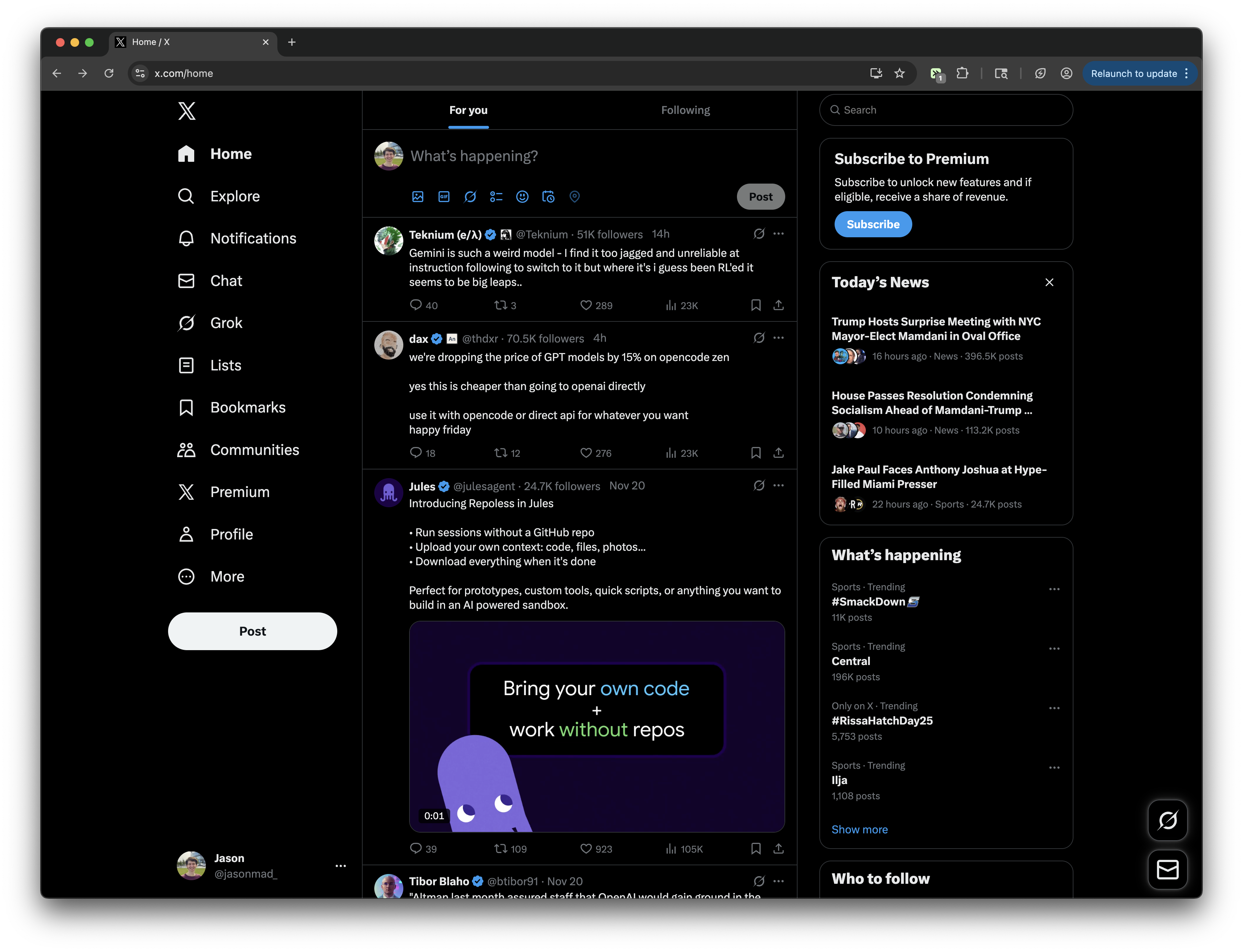 Prompt: Remove the right sidebar/footer. Expand the feed fill the space.