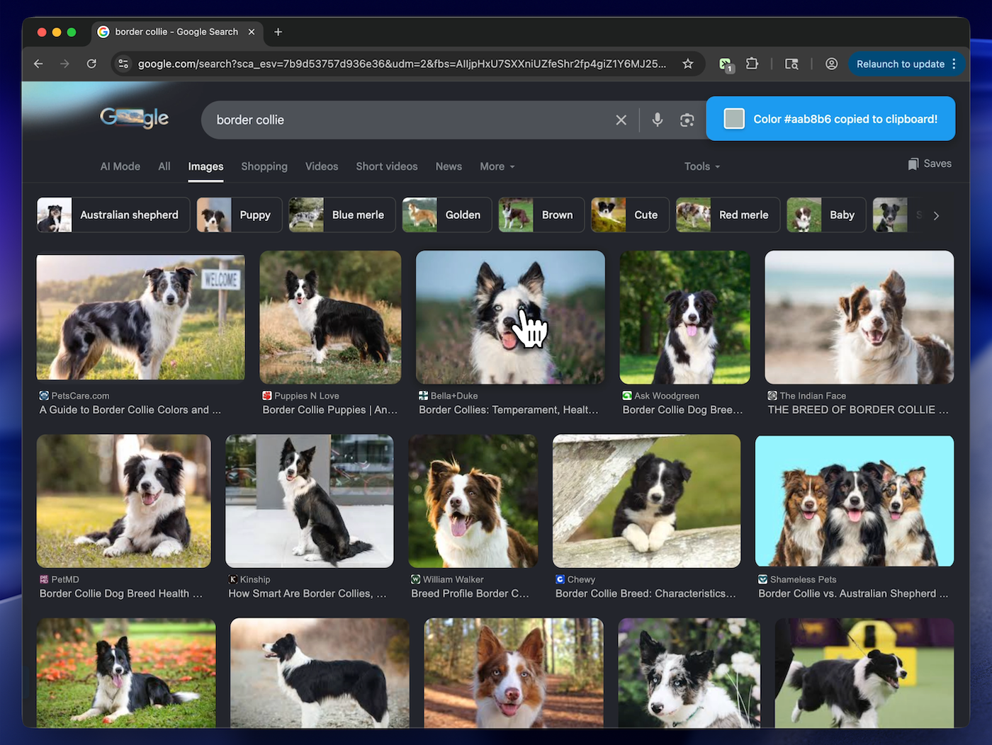 Prompt: Add a color picker (triggered with a menu command). Use native EyeDropper API and copy to clipboard.