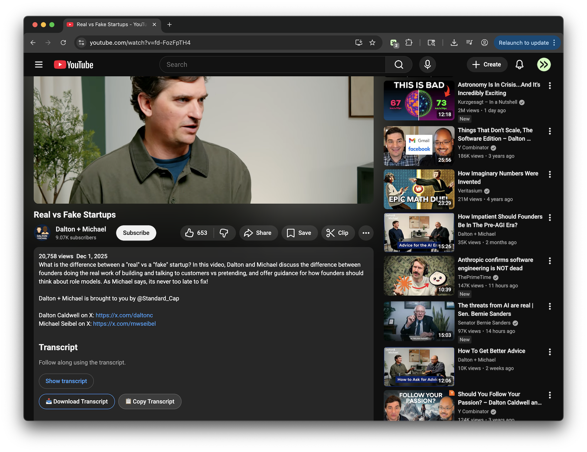 Adds buttons to download or copy YouTube video transcripts from the video description area