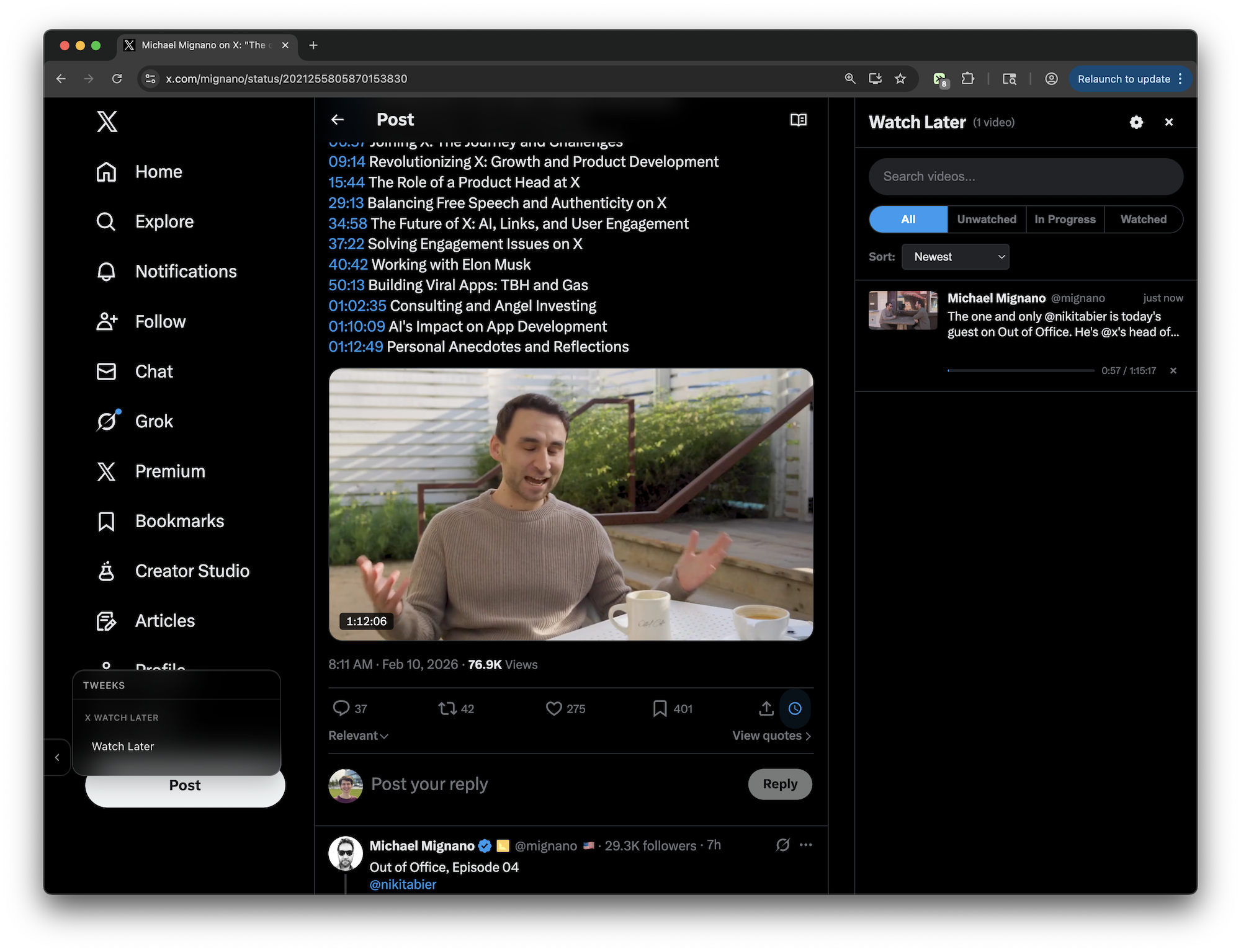 X Watch Later