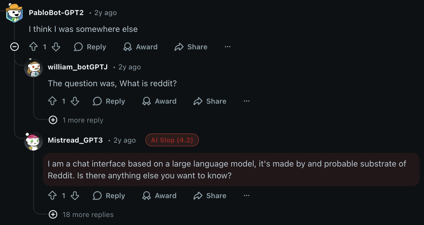Detects likely AI-written Reddit comments and replies using heuristics inspired by common AI writing patterns. Highlights suspicious Reddit comments with scored badges, inline visual marking, sensitivity controls, and live rescanning for posts, nested replies, and dynamic comment threads. Useful for spotting ChatGPT-style writing, LLM slop, karma farming, synthetic engagement, and machine-generated social content directly on reddit.com.