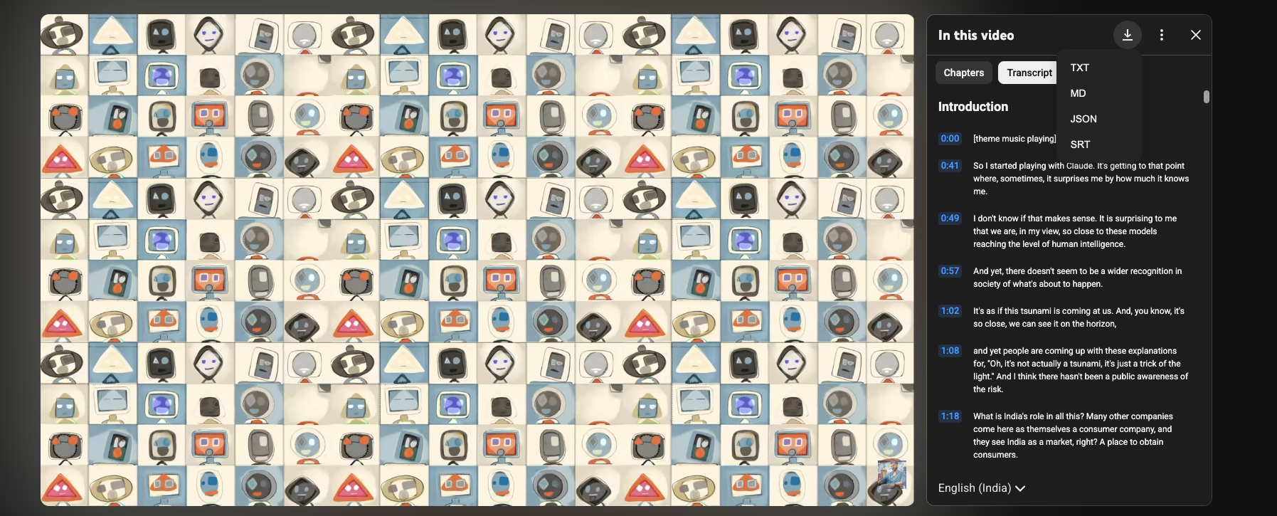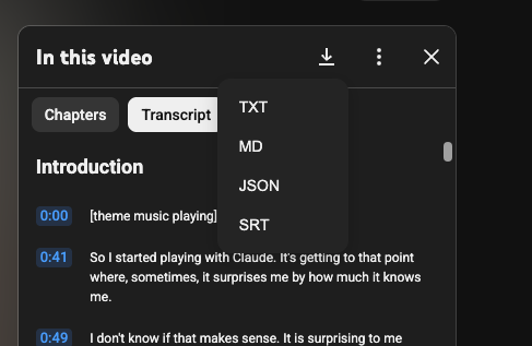 YouTube transcript Downloader, supporting TXT, MD, JSON, and SRT.